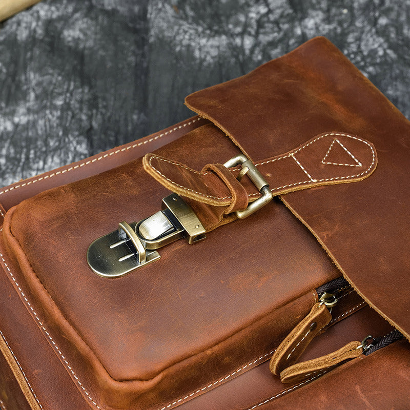 Step into polished refinement with the Men's Leather Satchel Bag, crafted from rich, full-grain cowhide. This timeless piece elevates your everyday, seamlessly transitioning from workdays to weekend adventures with effortless style and practicality.