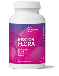 RestorFlora™ is a probiotic supplement that combines well-studied and widely-used probiotic strains Saccharomyces boulardii, Bacillus subtilis HU58, and Bacillus clausii SC109. This combination of probiotic yeast and bacteria offers comprehensive digestive flora support with an advanced, dual-action approach to maintain a healthy intestinal environment.